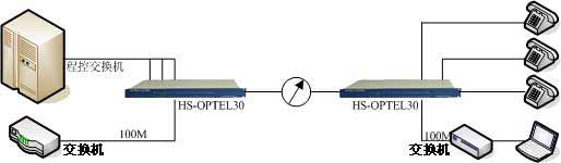 電話光端機(jī)可以通過(guò)光纜直接傳輸可提供8路、16路、24路電話、30路,48路電話,組網(wǎng)方式為點(diǎn) 對(duì)點(diǎn),支持FXO、FXS方式。解決了邊緣客戶的電話傳輸問(wèn)題。該設(shè)備采用的專用數(shù)字復(fù)接芯片功能強(qiáng) 大,它將設(shè)備中的數(shù)字邏輯功能幾乎全部集成,從而顯著提高了產(chǎn)品的性能并降低了成本。該設(shè)備整 機(jī)性能優(yōu)良,工作穩(wěn)定可靠,功耗低,集成度高,體積小,易于安裝維護(hù)。 組網(wǎng)方案: