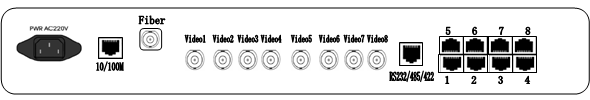 后面板有為8個(gè)BNC插座。標(biāo)識(shí)為Video1…Video8。
