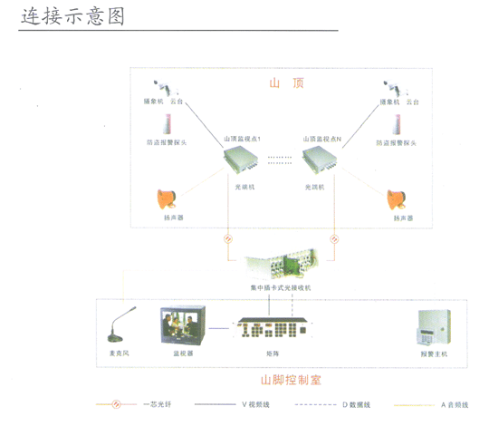 由于在森林防火監(jiān)控系統(tǒng)中每個(gè)監(jiān)控點(diǎn)位置分布不規(guī)則,而且與控制室之間的距離較遠(yuǎn),實(shí)現(xiàn)視頻、控制數(shù)據(jù)、音頻、報(bào)警信號(hào)的遠(yuǎn)程傳輸,所以在森林防火監(jiān)控系統(tǒng)中采用漢信HS-VADE系列多路視頻、音頻、數(shù)據(jù)、報(bào)警光端機(jī)進(jìn)行傳輸,實(shí)現(xiàn)山下到山上全方位靈活指揮,同時(shí)保證系統(tǒng)的穩(wěn)定性及傳輸效果。